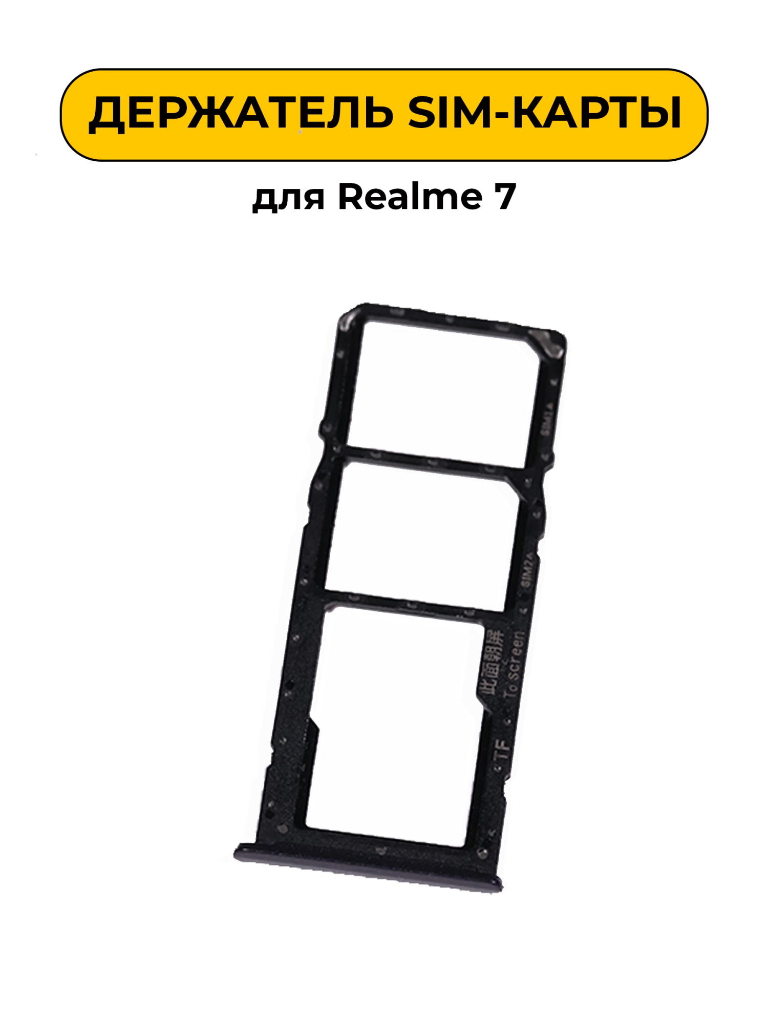 SIM лоток для Realme 7 Black предназначен для установки SIM-карт в смартфон. Он обеспечивает комфортное использование телефона с поддержкой необходимых операторов связи. Данный лоток позволяет легко заменить или добавить SIM-карту, не повреждая устройство.